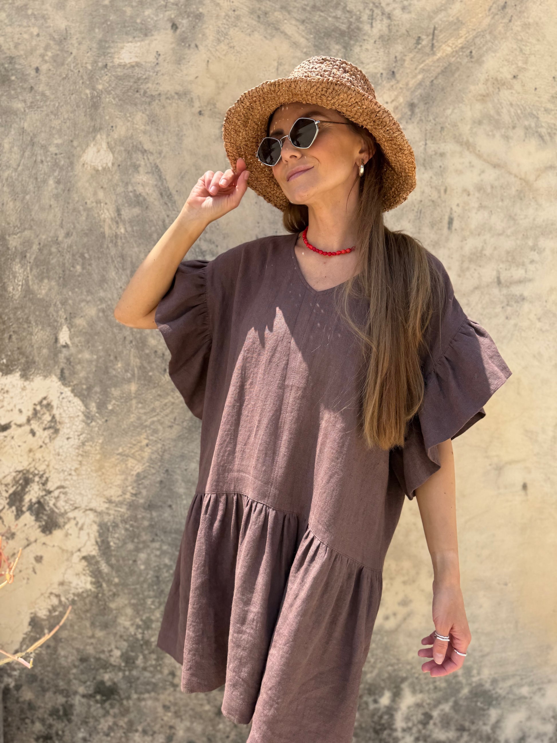 palma dress is your ultimate summer dress. it has bold frilled sleeves and skirt to balance the boxy silhouette of its body, plus a soft V neckline. its versatile silhouette will take you equally prettily through beach days and summer parties.