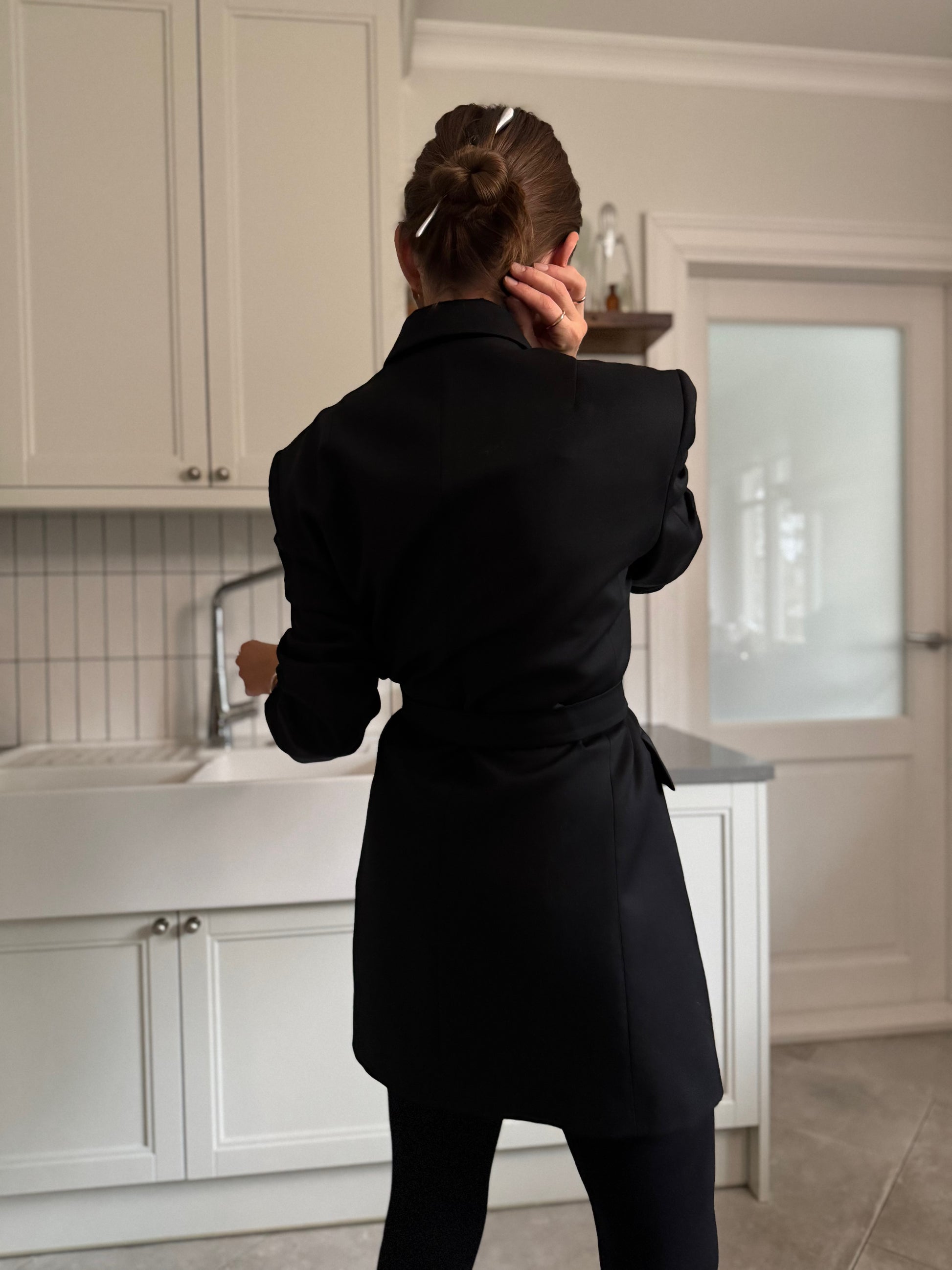 milan blazer dress is a longer version of our milan blazer. crafted from fine wool, it has an oversized silhouette topped with bold shoulder. inspired by menswear, its masculine cut is a perfect base to feminine accessories.