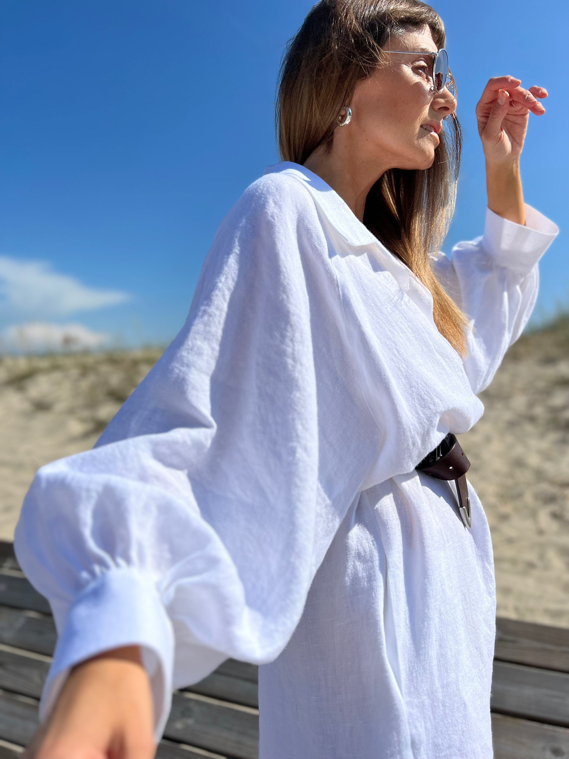 rome dress has bold and rich sleeves and equally showy back side. wear it loose for those simple moments, tie it up with a fabric belt (comes with the dress) or dress it up with your own belt to add another face to this dress.