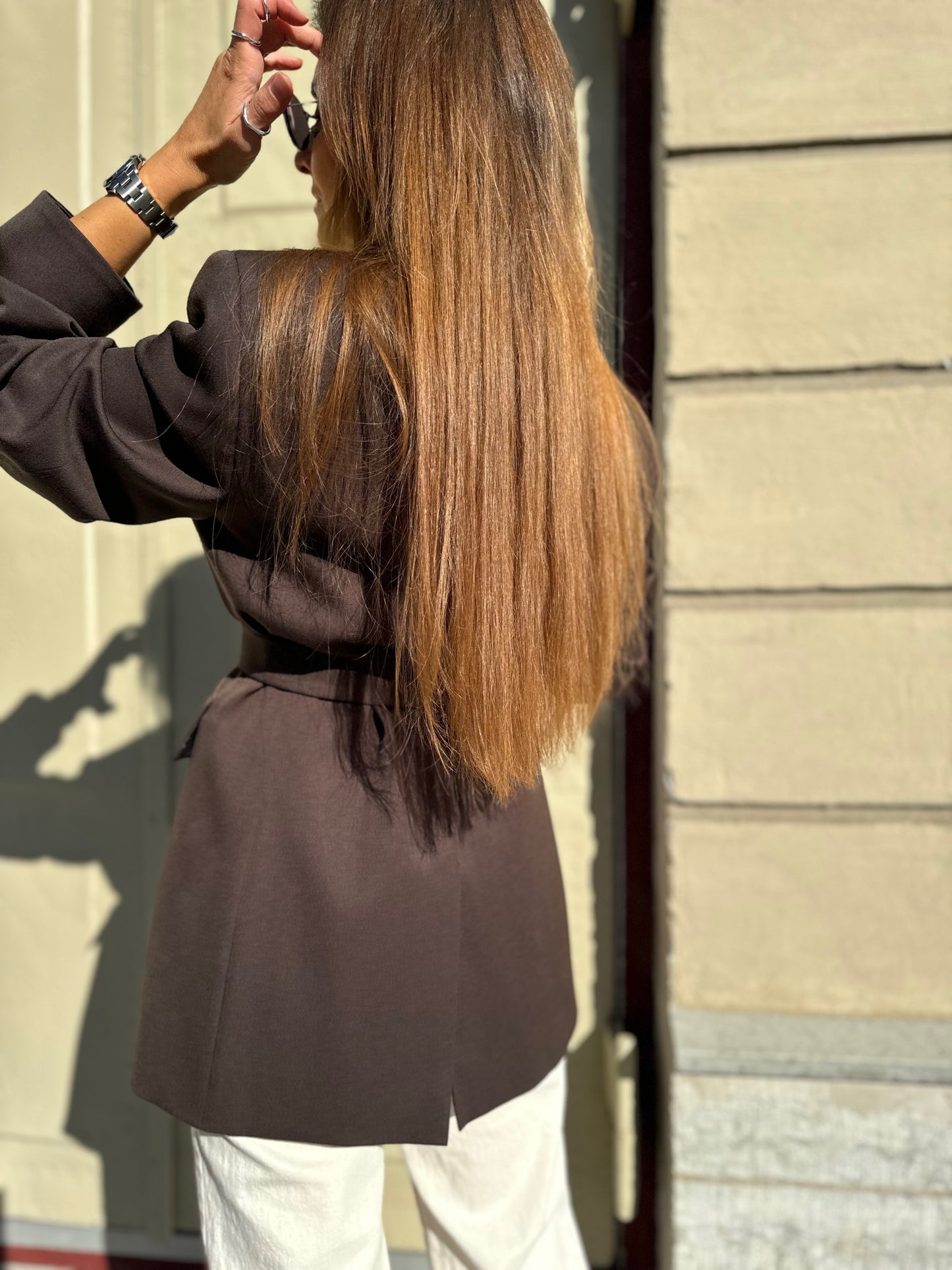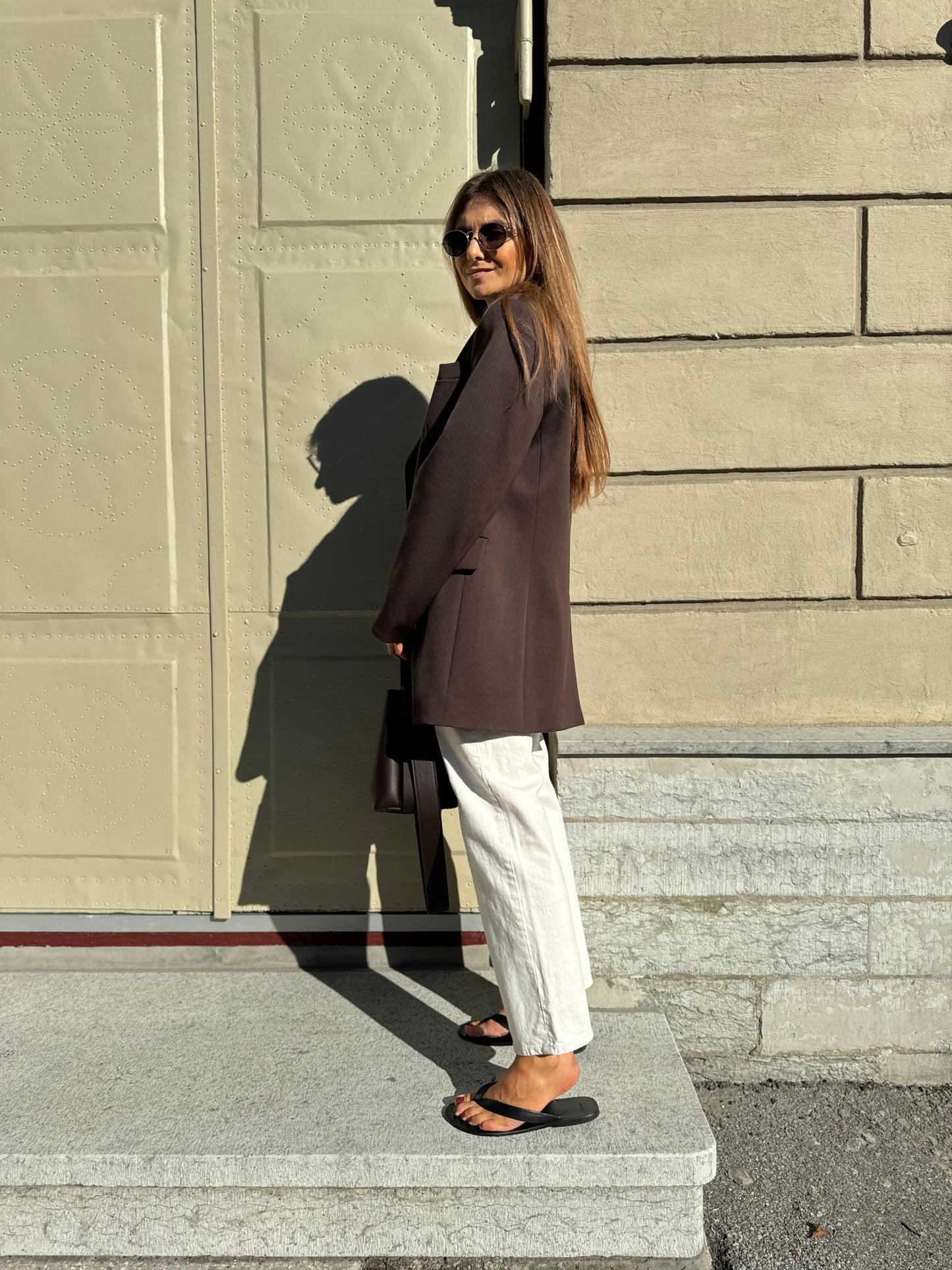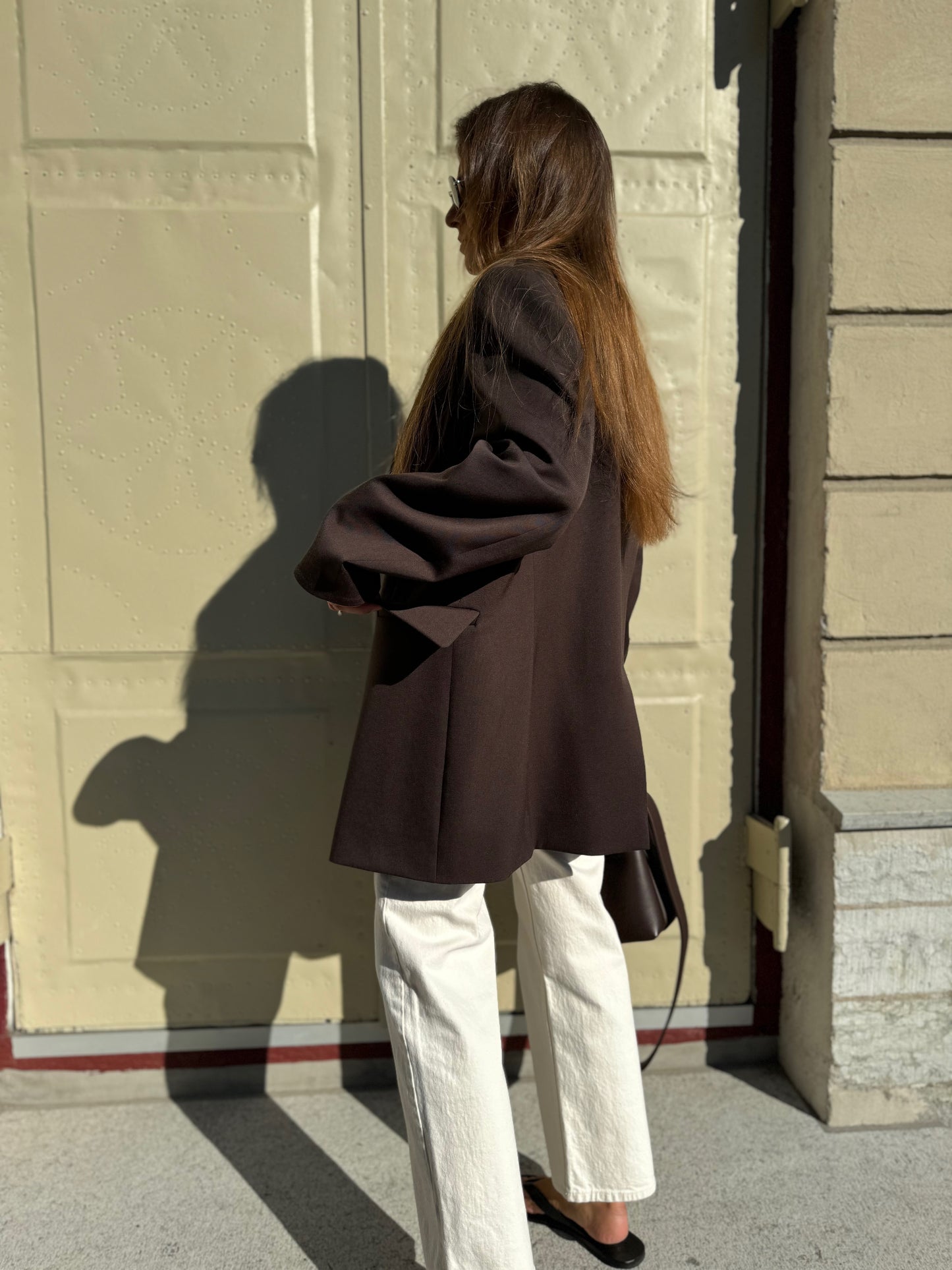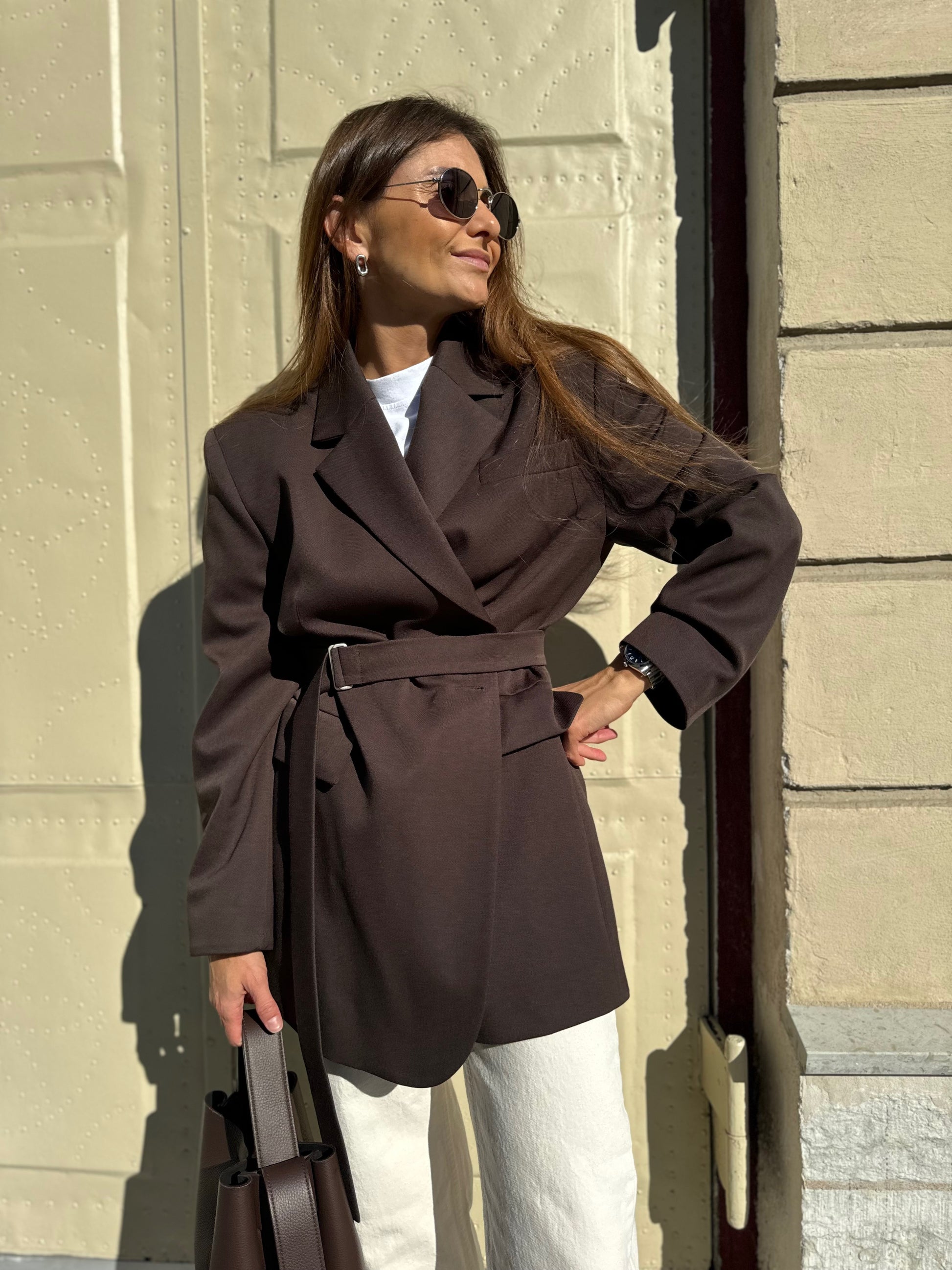 our milan blazer has an oversized silhouette topped with bold shoulder. inspired by menswear, its masculine cut is a perfect addition to feminine bottom layers. wear it as it is or create more feminine silhouette with the optional belt. size down for a regular fit.