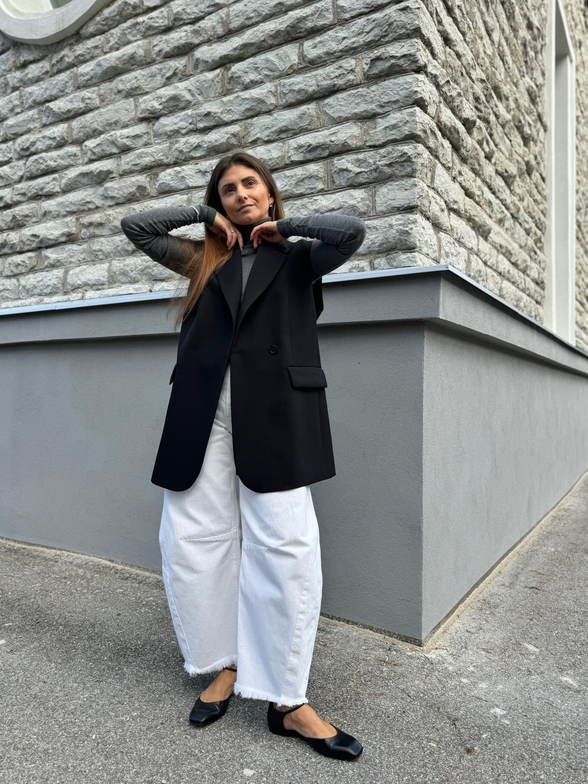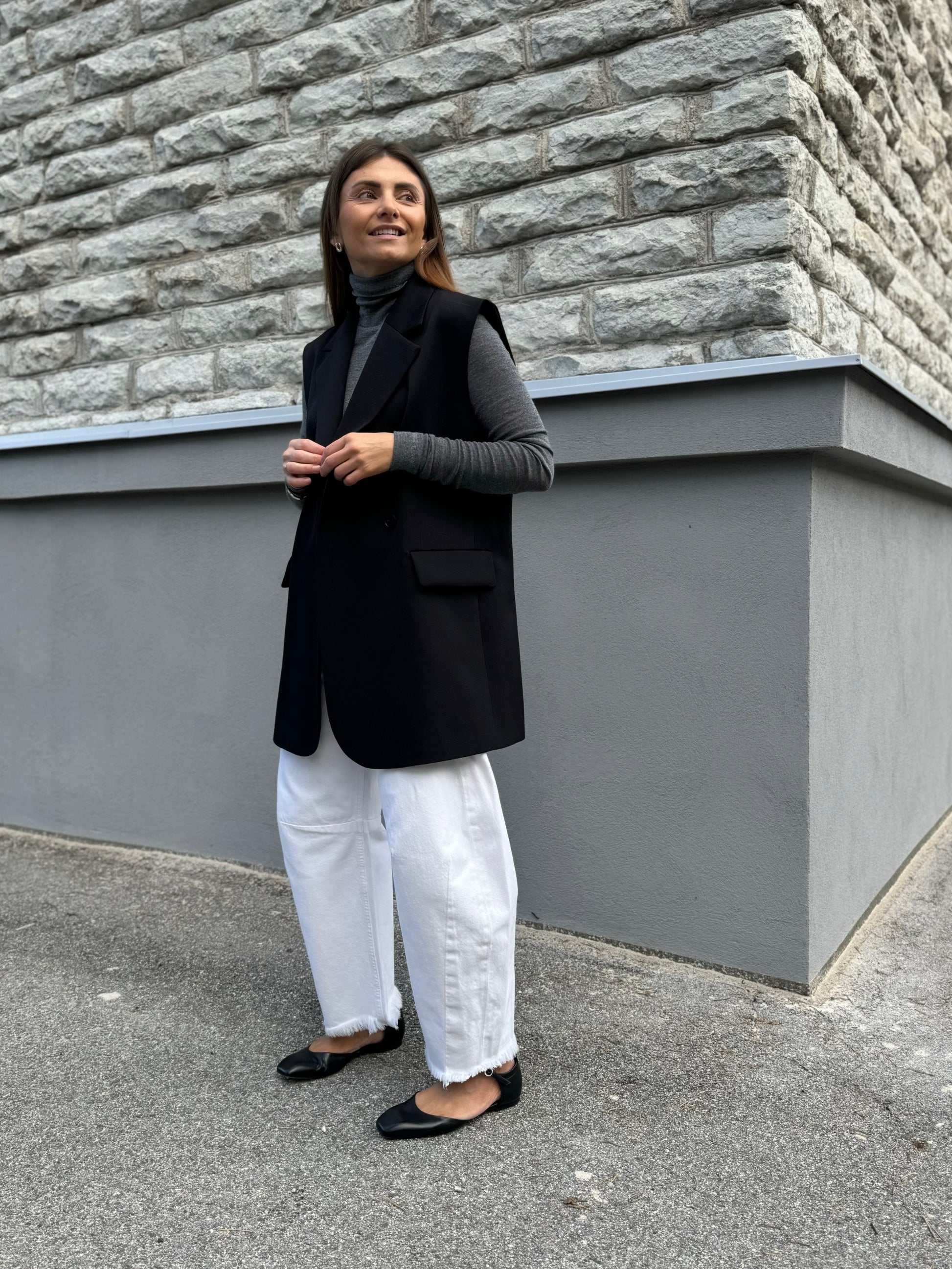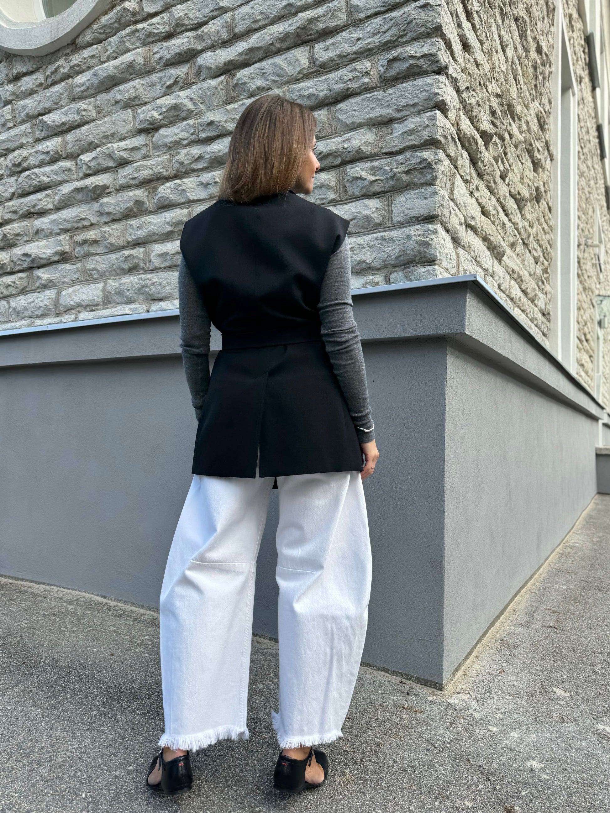 milan fine wool waistcoat has an oversized silhouette topped with bold shoulder. inspired by menswear, its masculine cut is a perfect addition to feminine bottom layers. wear it as it is or create more feminine silhouette with the optional belt. size down for a regular fit.