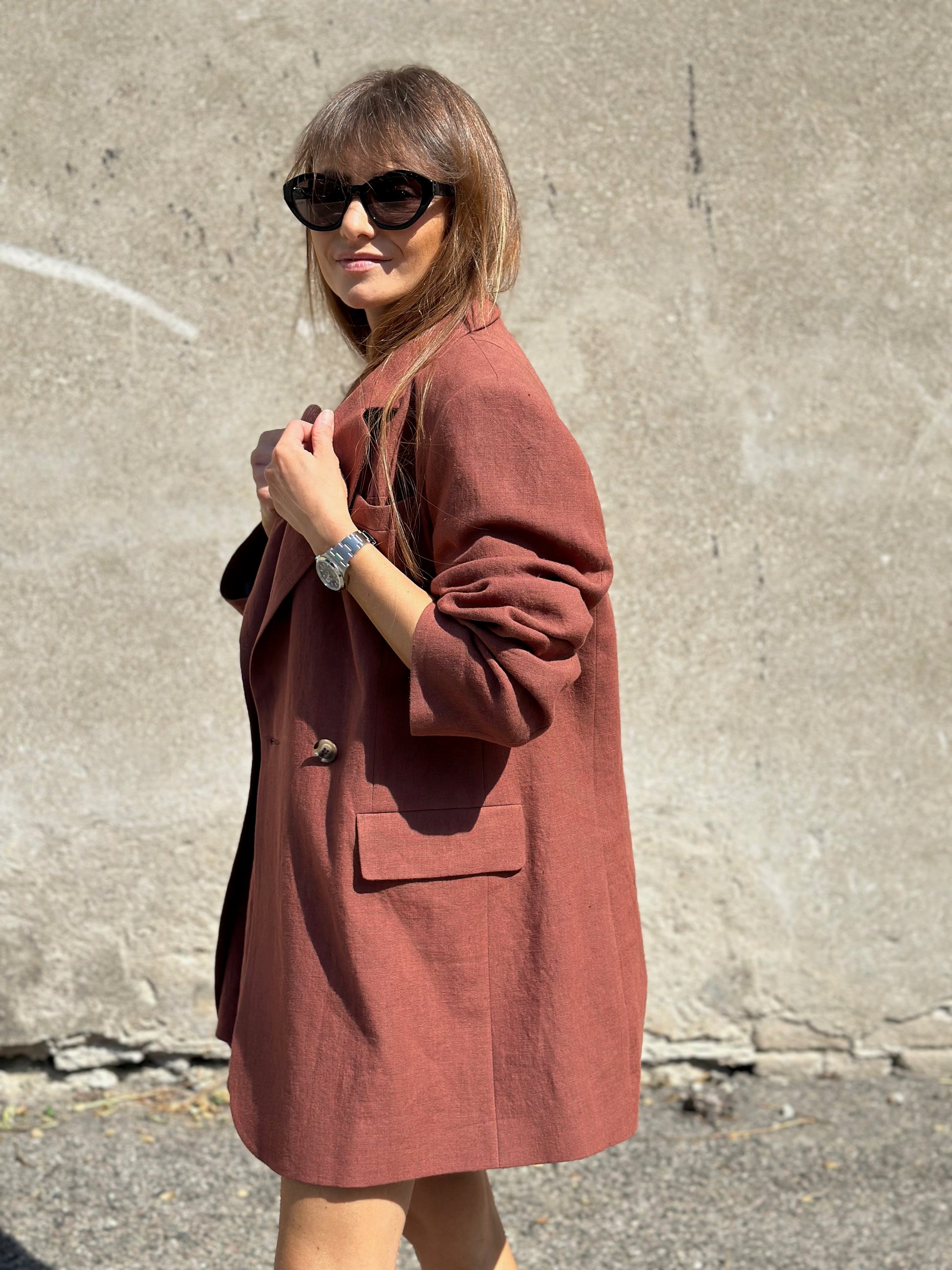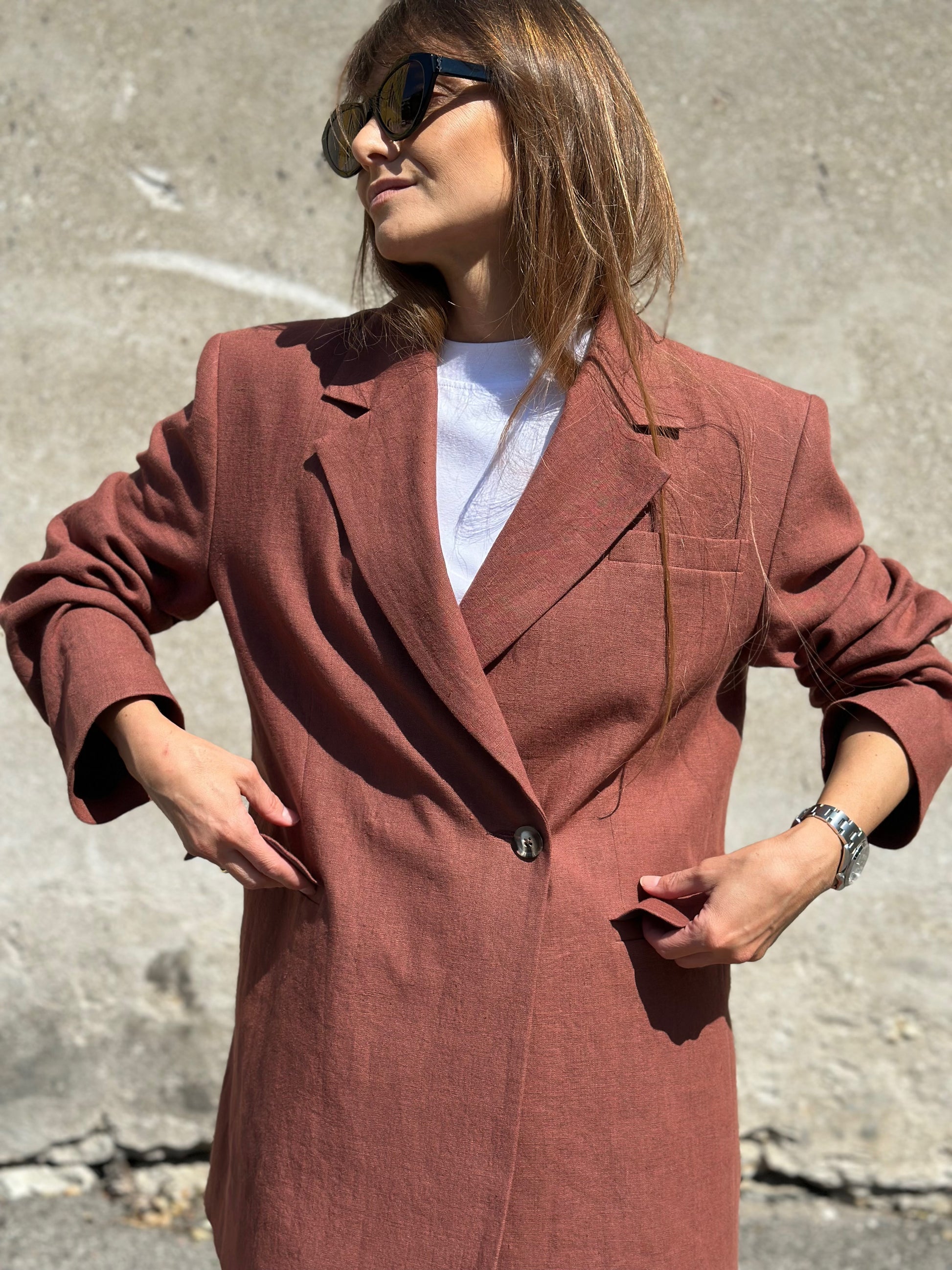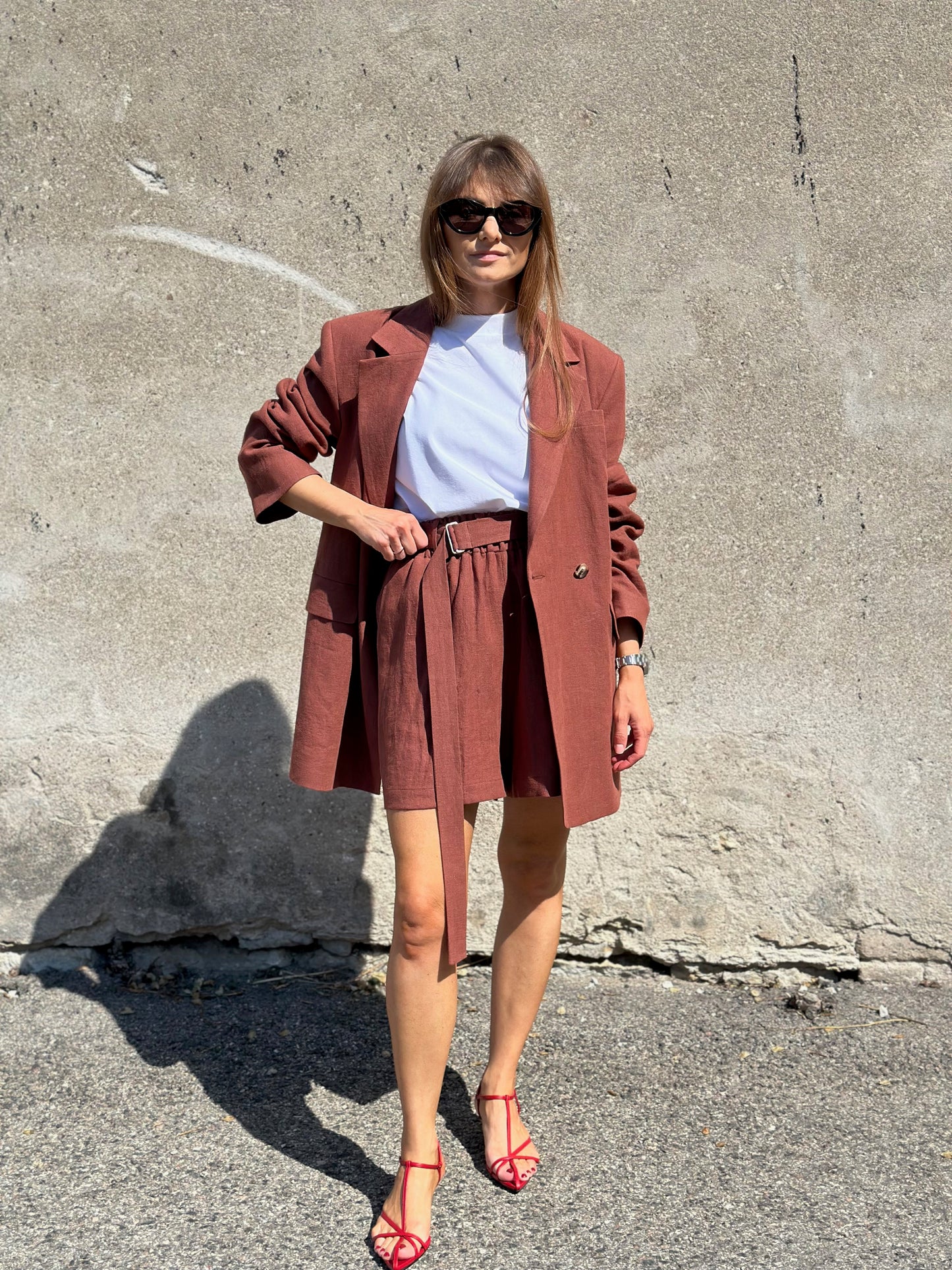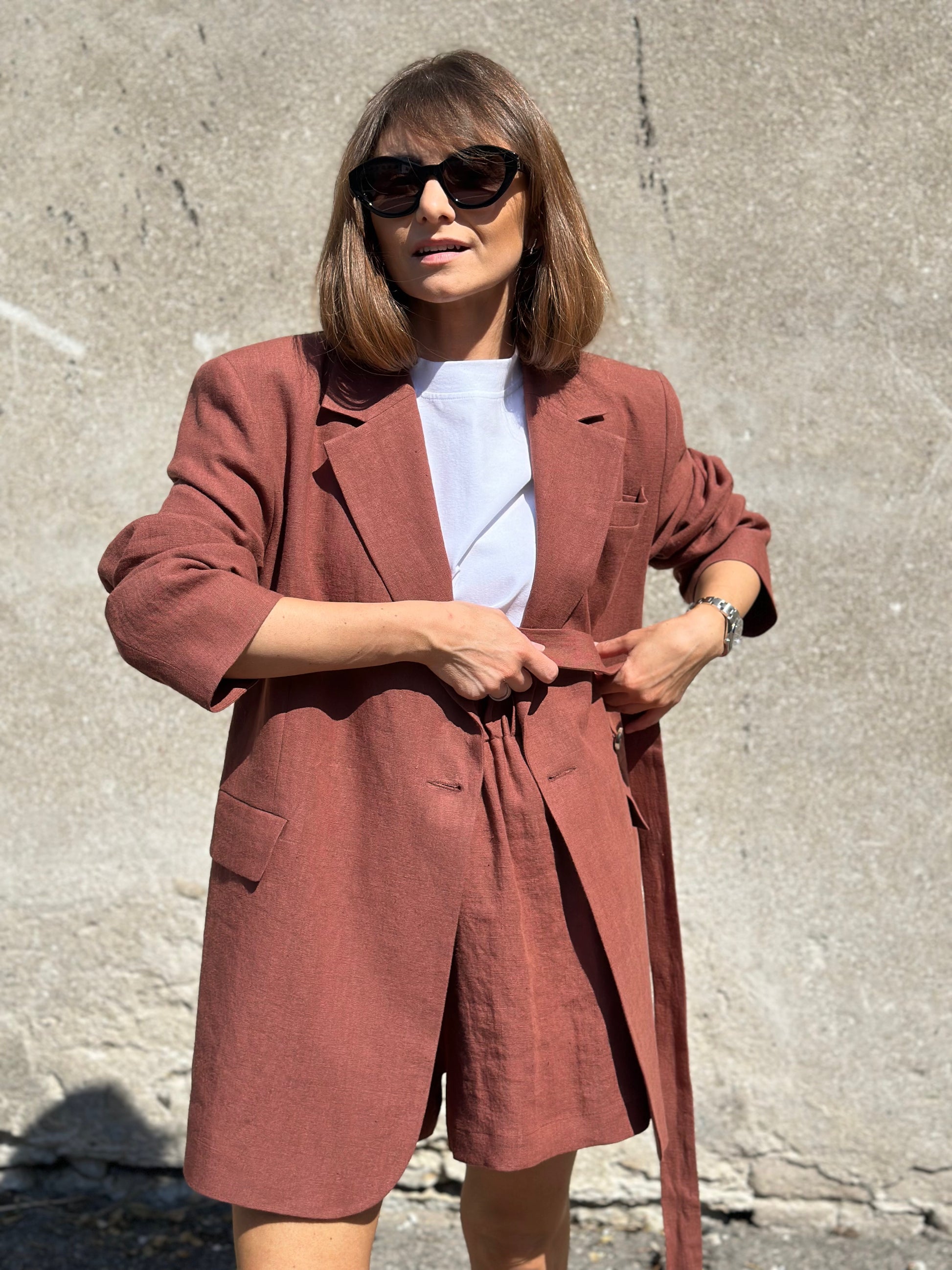 our milan blazer has an oversized silhouette topped with bold shoulder. inspired by menswear, its masculine cut is a perfect addition to feminine bottom layers. wear it as it is or create more feminine silhouette with the optional belt. size down for a regular fit.