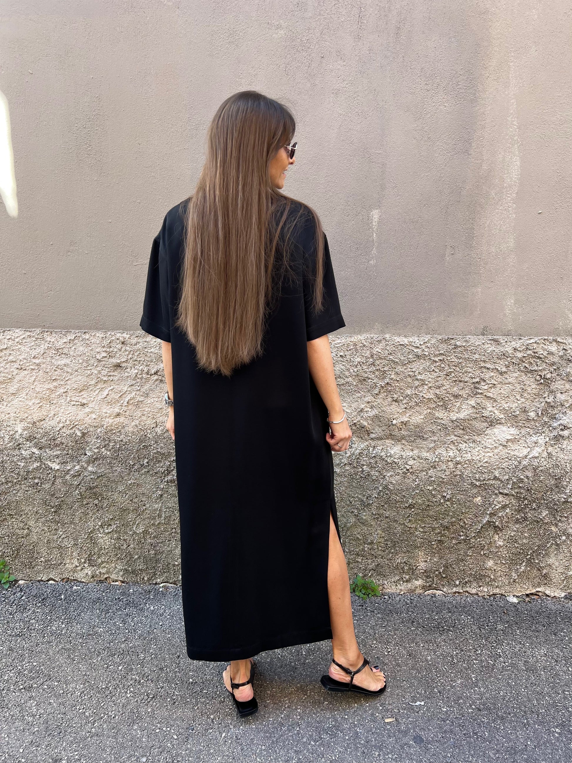with its simple cut, soft drape and lustrous finish, lyocell porto dress is a perfect base for contemporary outfits. slits on sides to add comfort and movement. pockets in side seams.