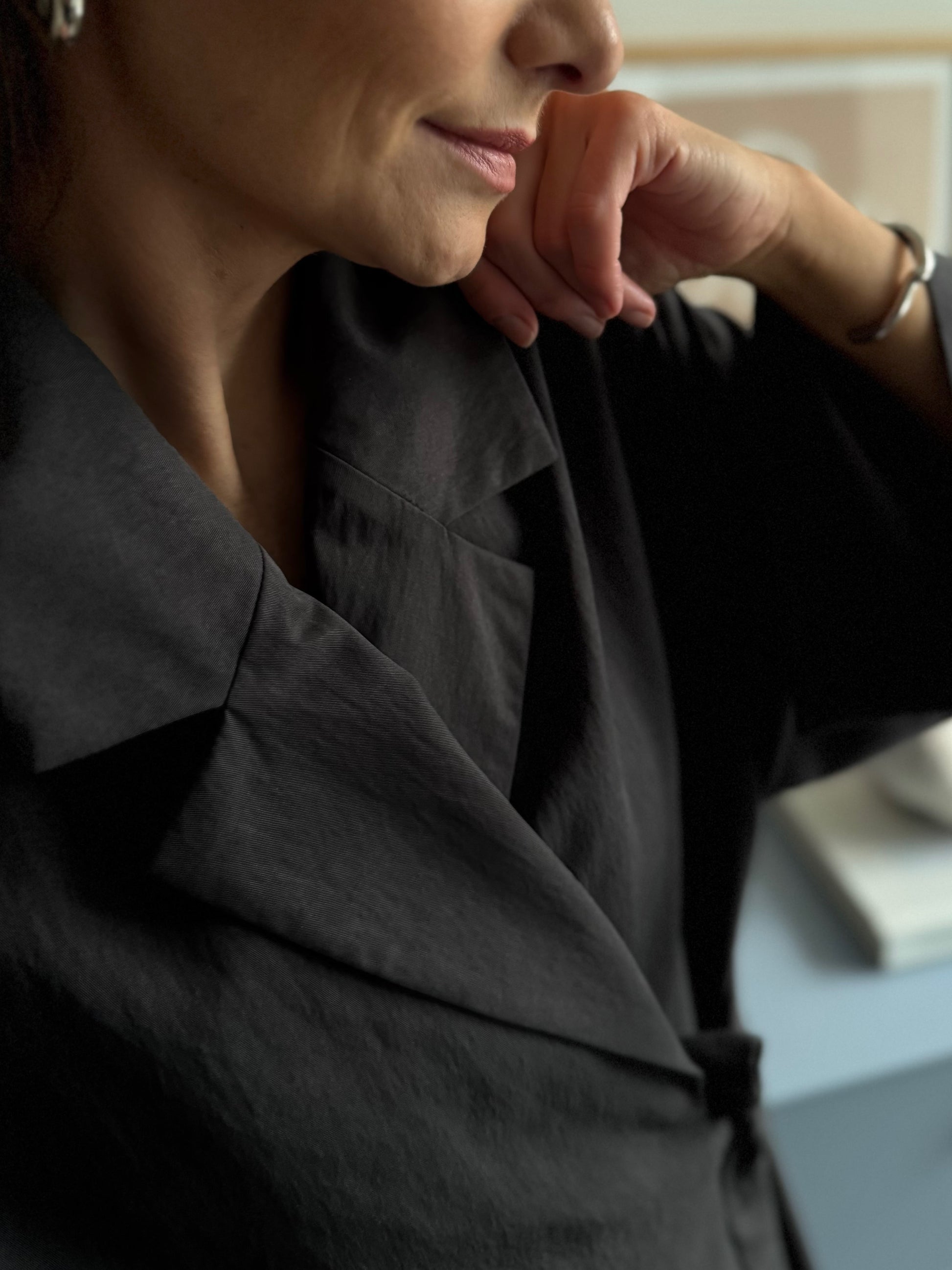 siena is a flowy blazer-style blouse that oozes effortless elegance. this lyocell blouse will be your trustworthy companion on so many occasions combining the best of casual and elegant. standard length is 75 cm.