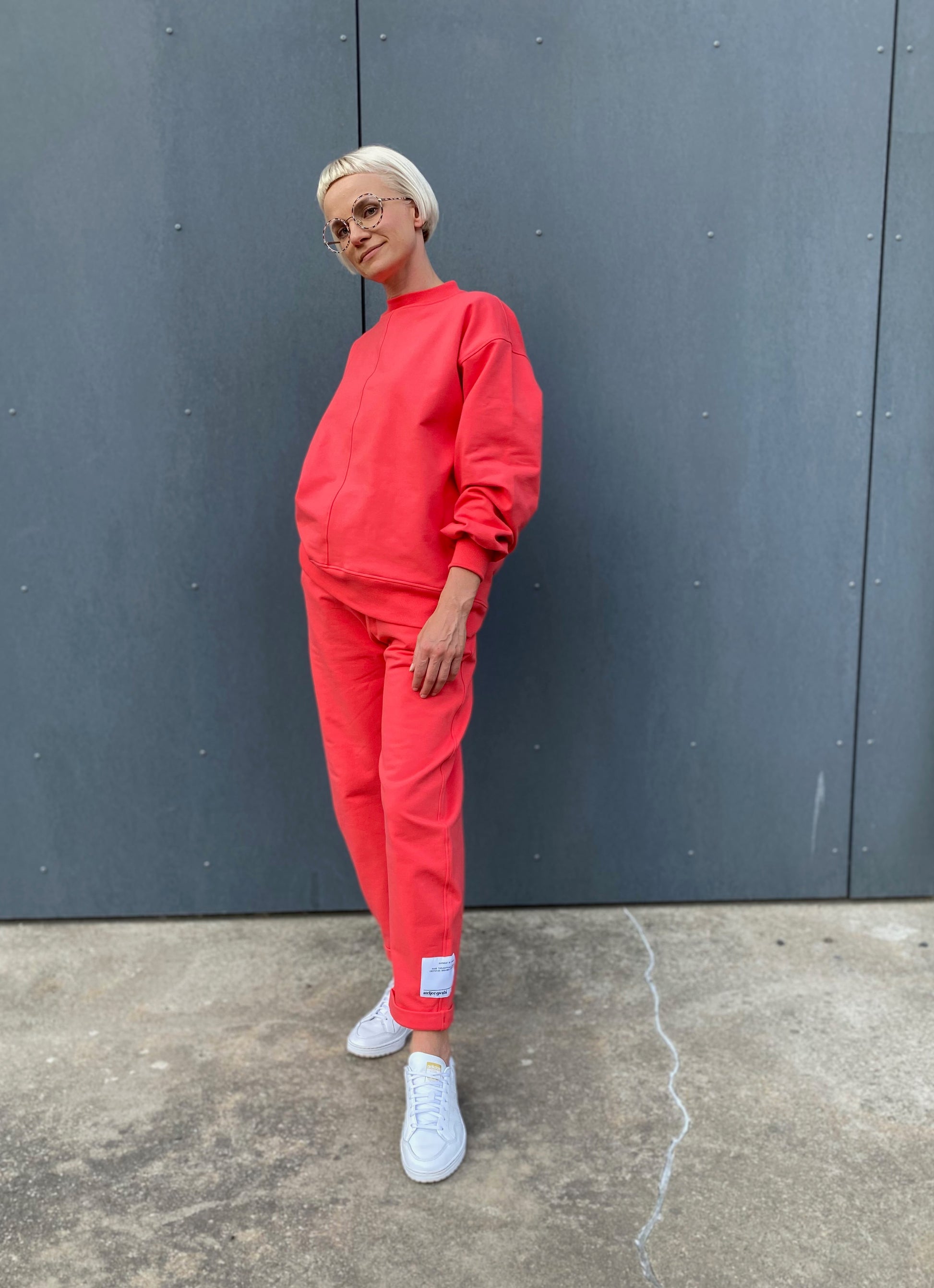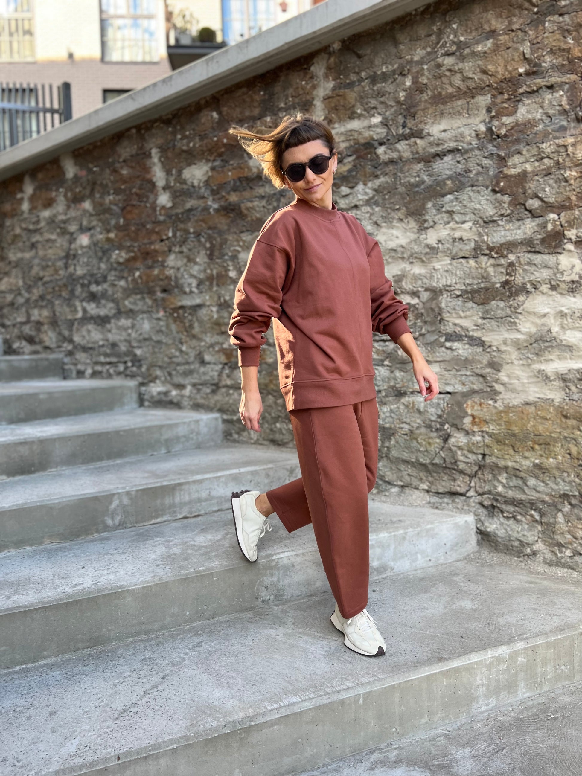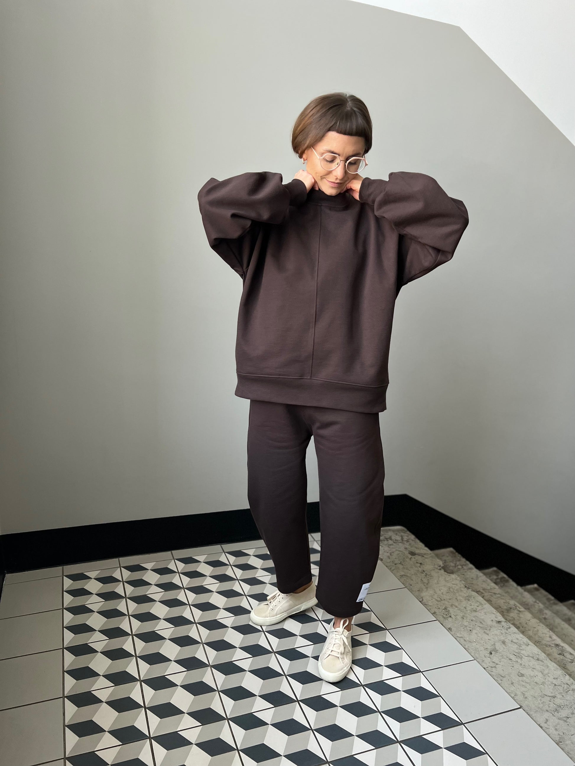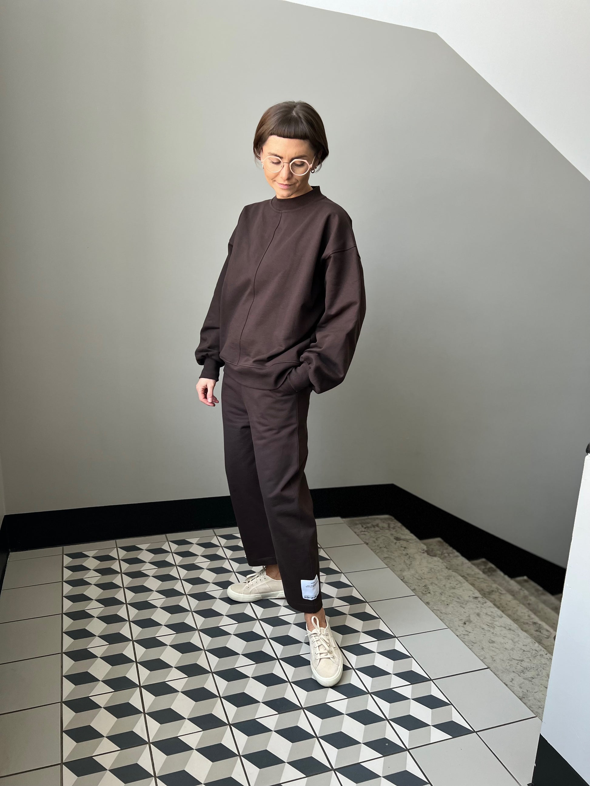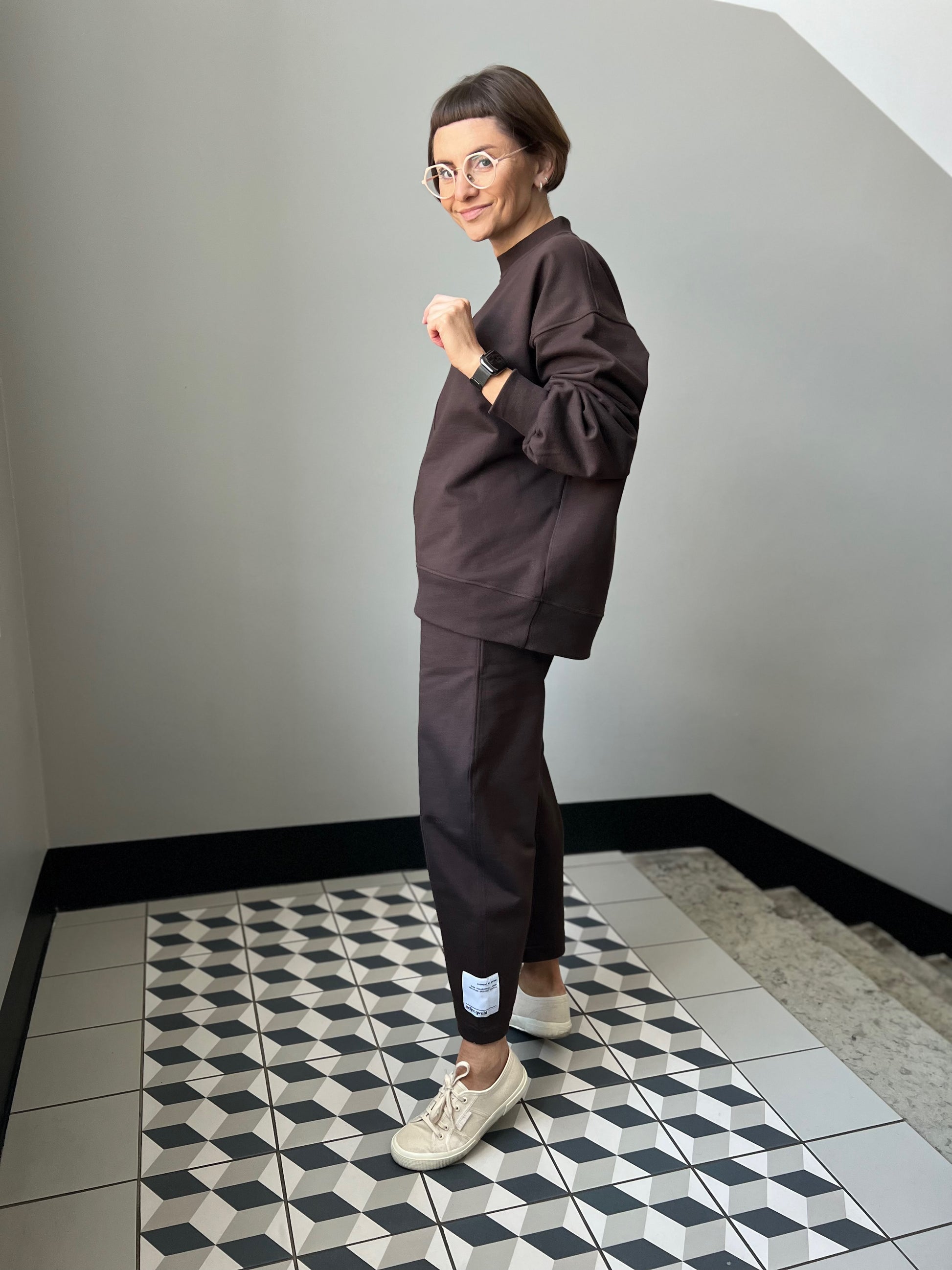 our soft sweat is GOTS certified and produced in estonia from organic cotton. it consists of 95% cotton and 5% elastane. AW2022 colors (azure, espresso, and maple syrup) consist of 100% cotton and have this slightly sturdy feel.