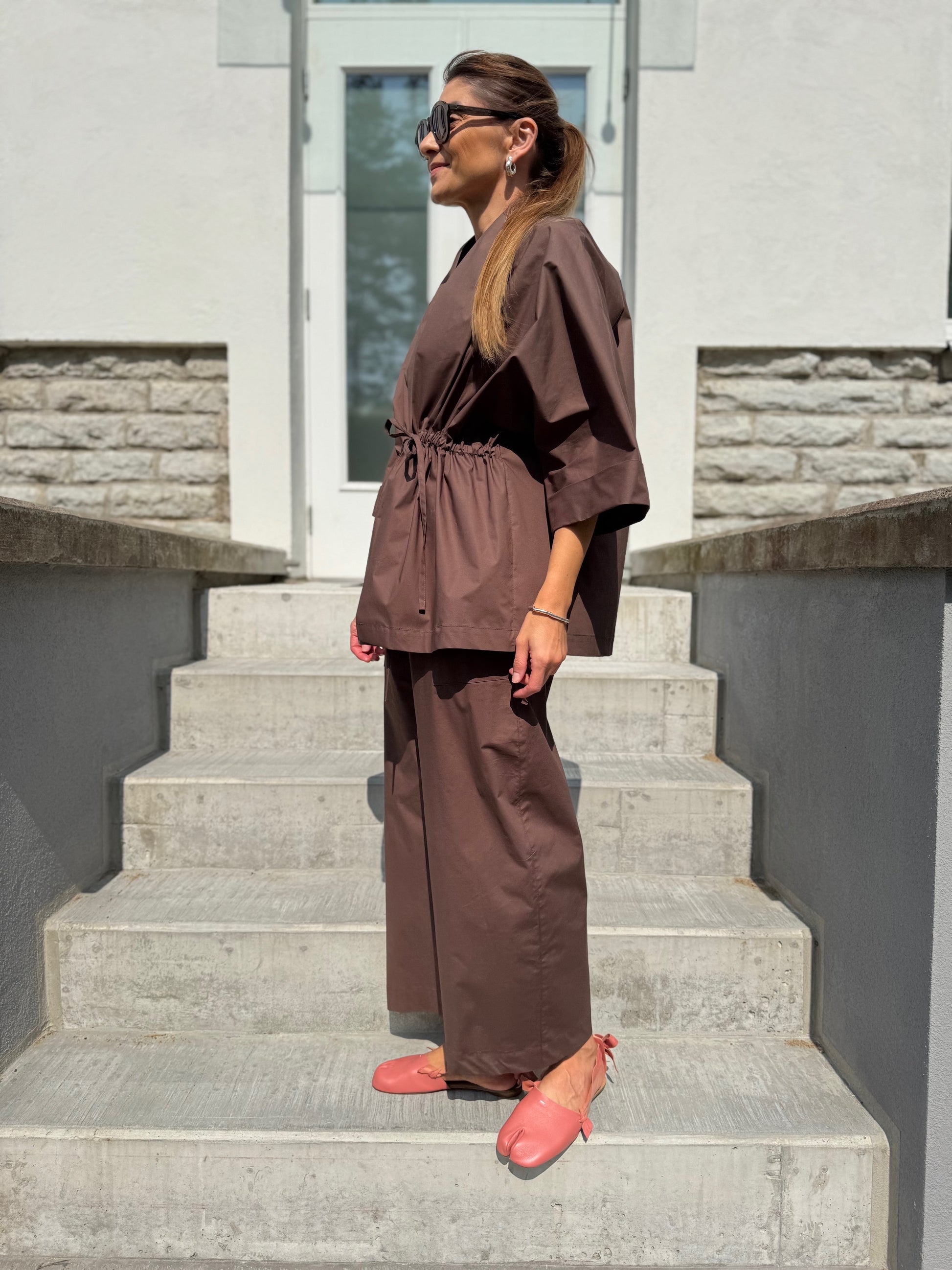 cut in our breathable cotton poplin, deia open blouse features a kimono inspired rolled up sleeves and neckline finished with an adjustable waist that you can gather to your own liking. it creates a fresh everyday silhouette, a piece that fast becomes a wardrobe staple that turns basics into looks, something that adds structure without weighing things down. wear open as a light jacket or gathered as a blouse.