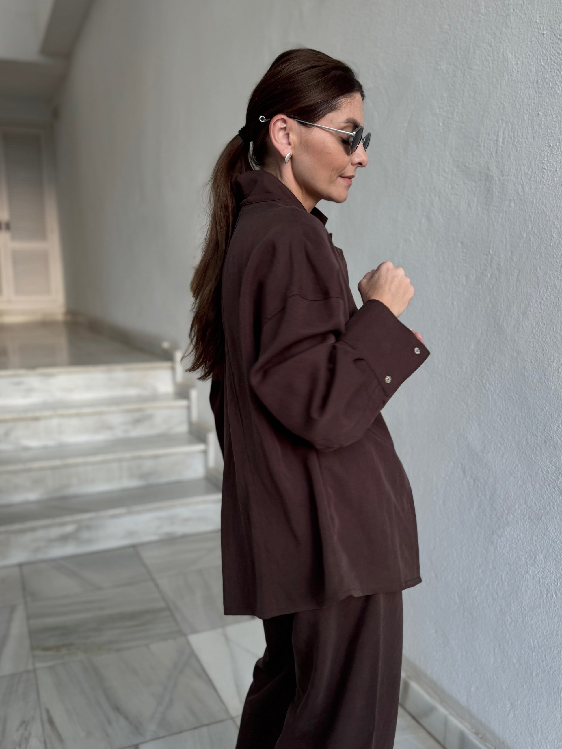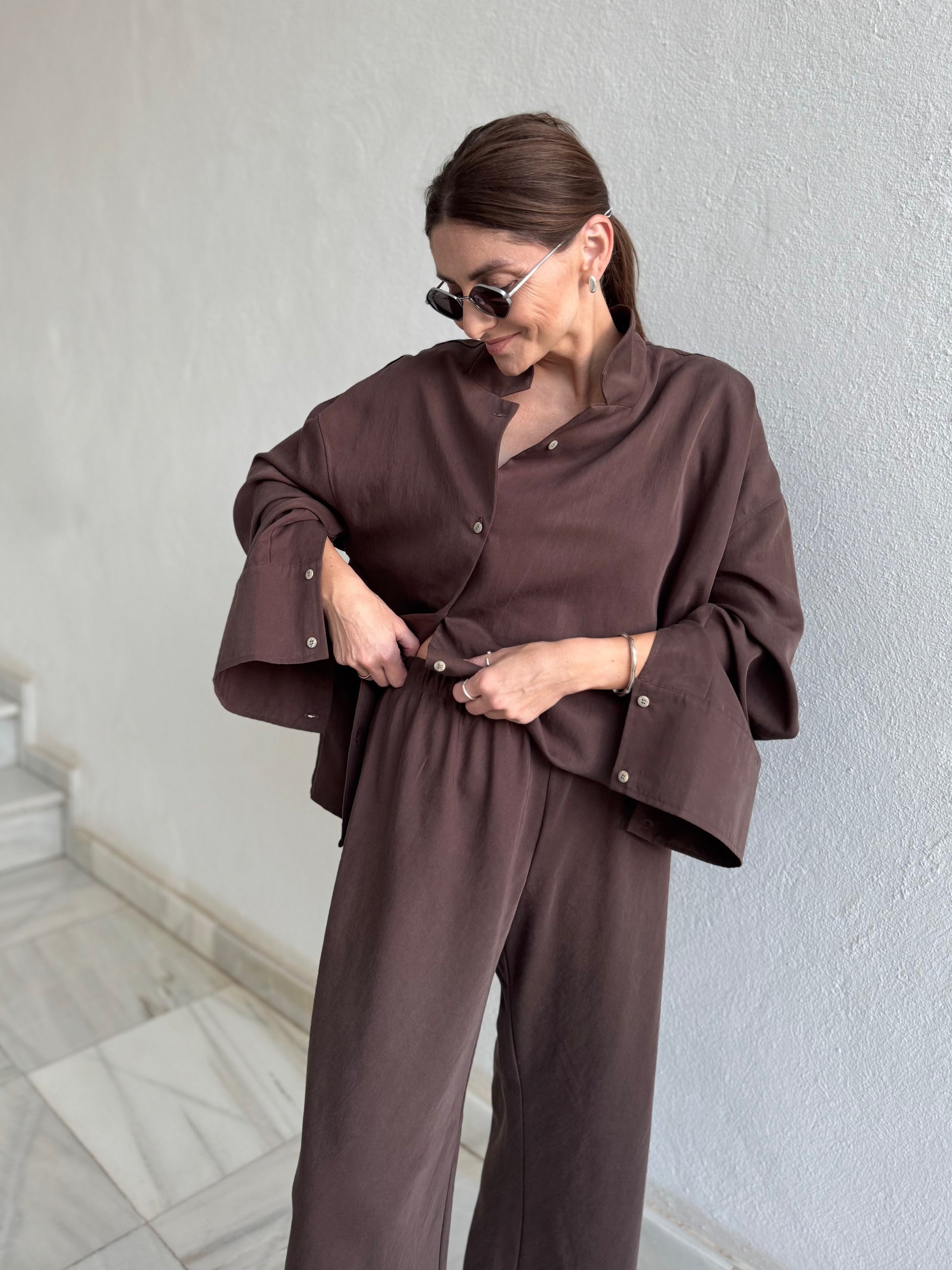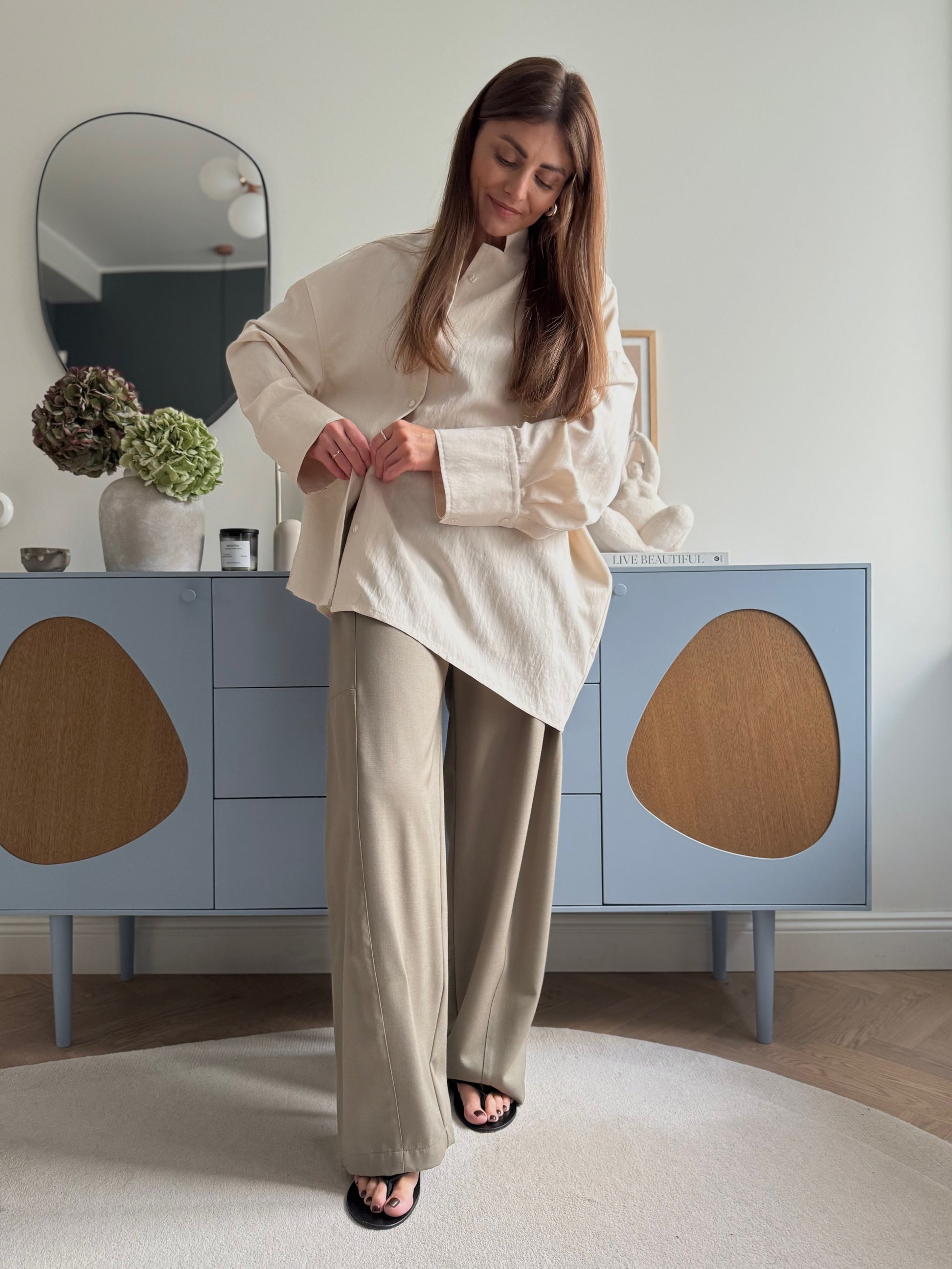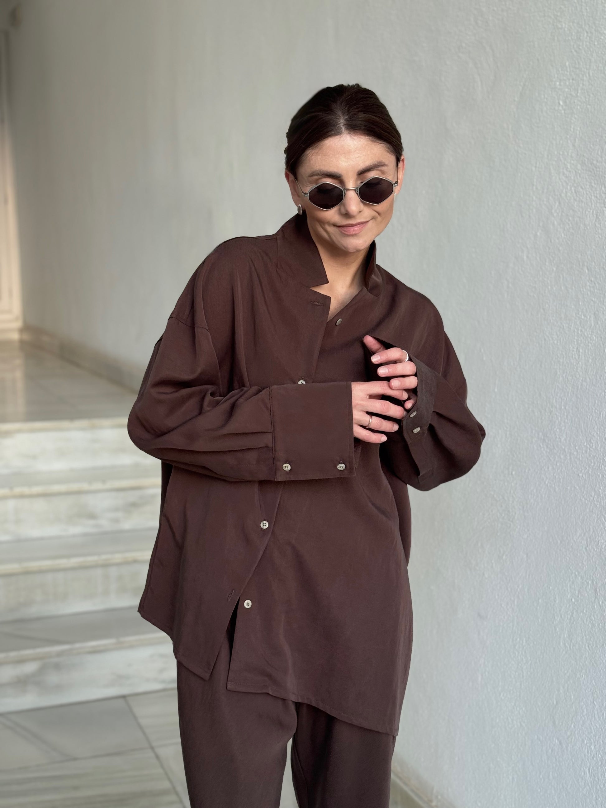 harajuku asymmetric lyocell button down features a stand-up collar, long sleeves finished with wide cuffs and a button front fastening. this might easily become your summer favorite as it conveniently works as both: a shirt and a light jacket. our tip is to wear cuffs unbuttoned and embrace unexpected kimono feels.