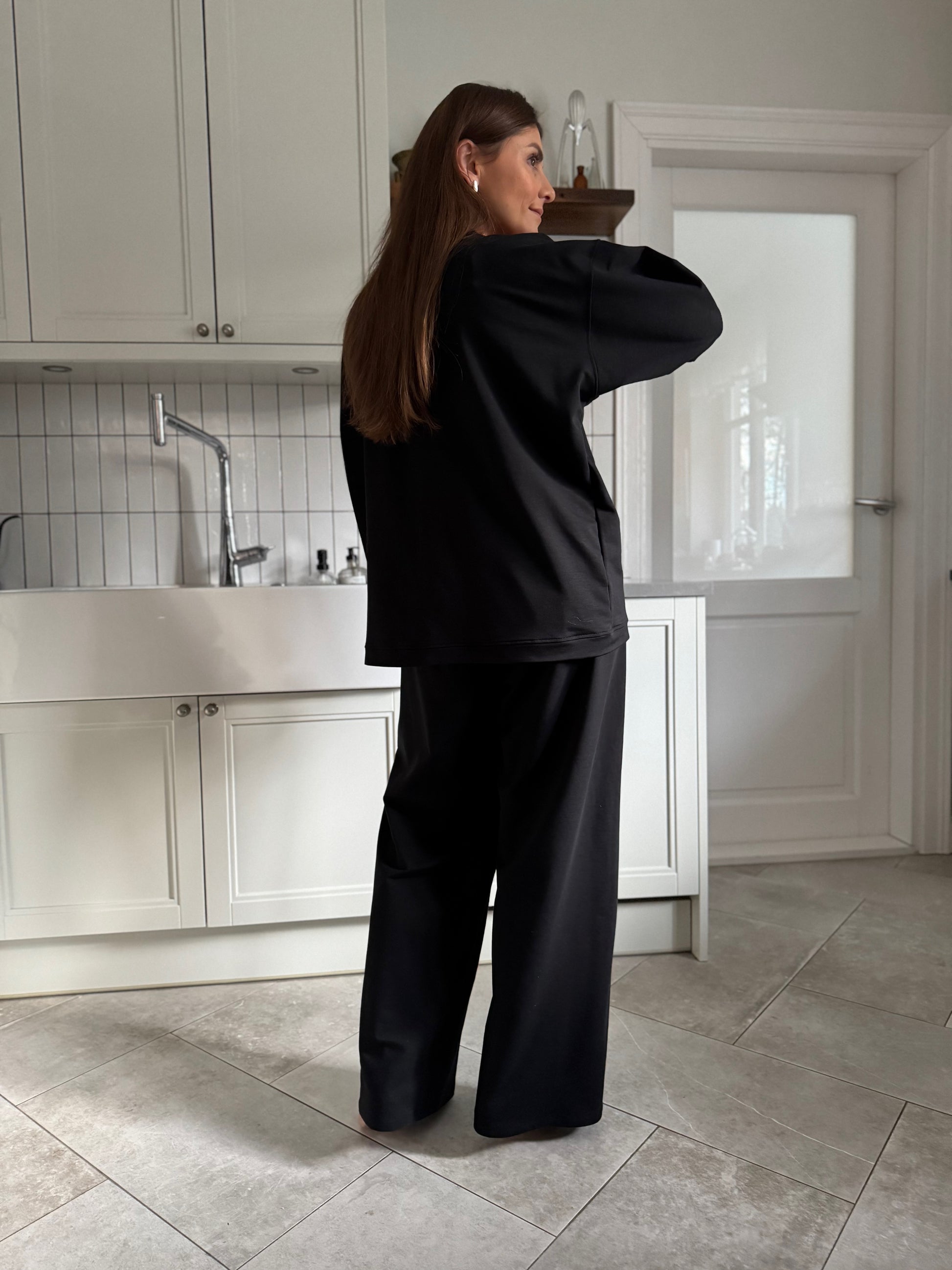 this boxy long sleeve shirt is perfect for day to day life when you want to feel a little extra, slightly longer at the back, generous sleeves.