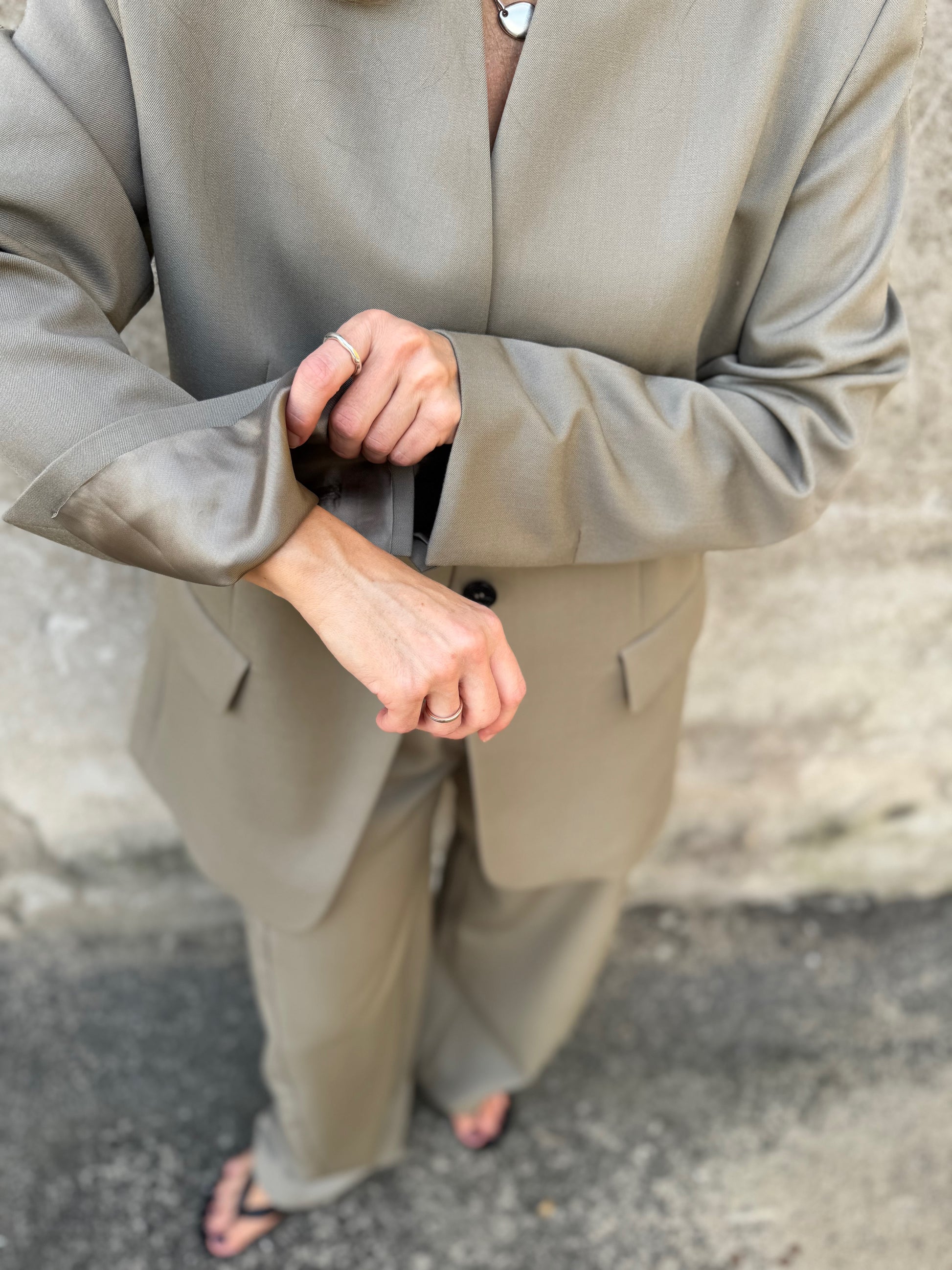 our malaga blazer has a feminine silhouette topped with bold shoulder. it has a minimal contemporary cut with a single button closure, two side flap pockets and open slits at the end of the sleeves. malaga blazer is minimal, effortless and quietly powerful.