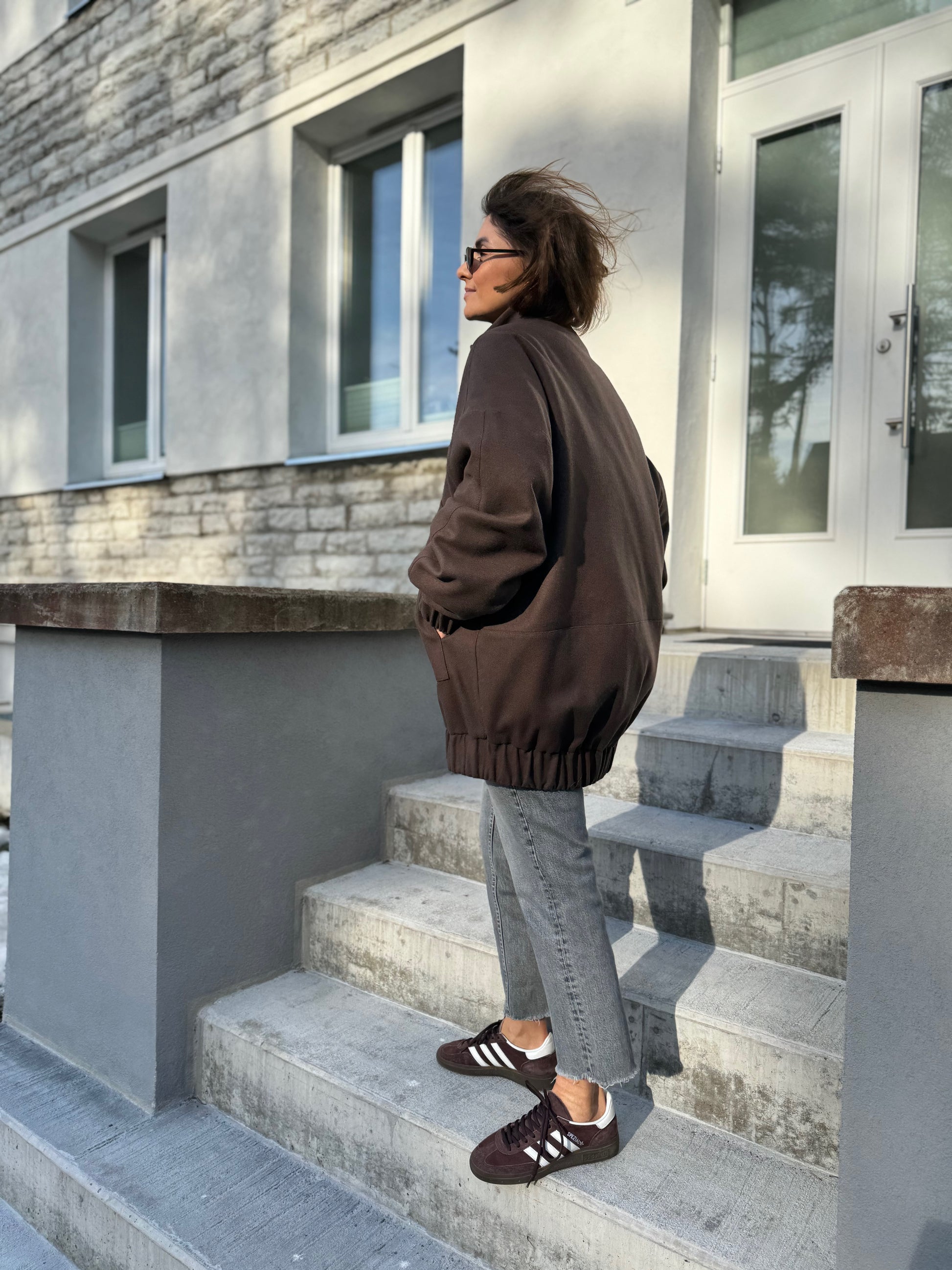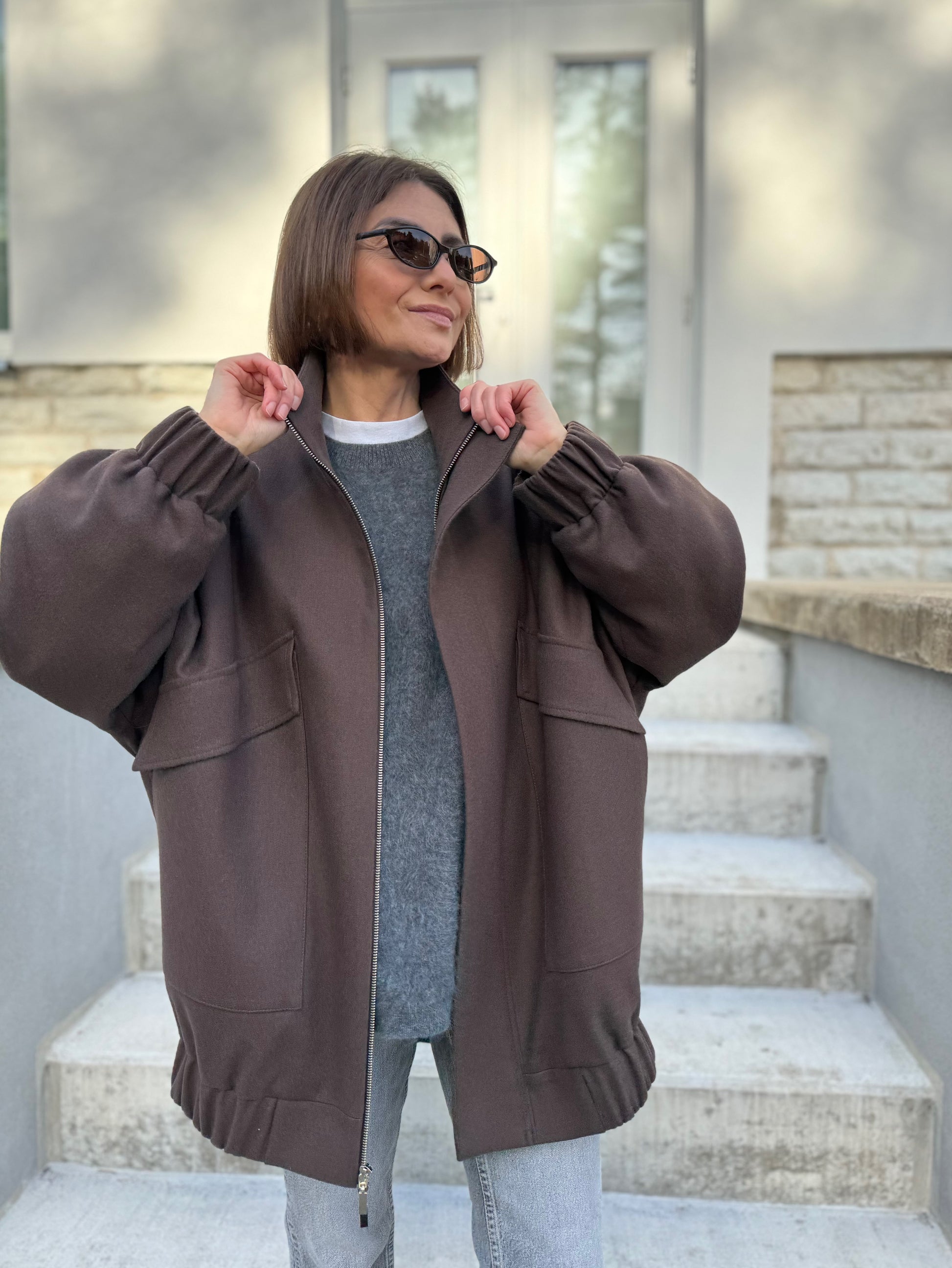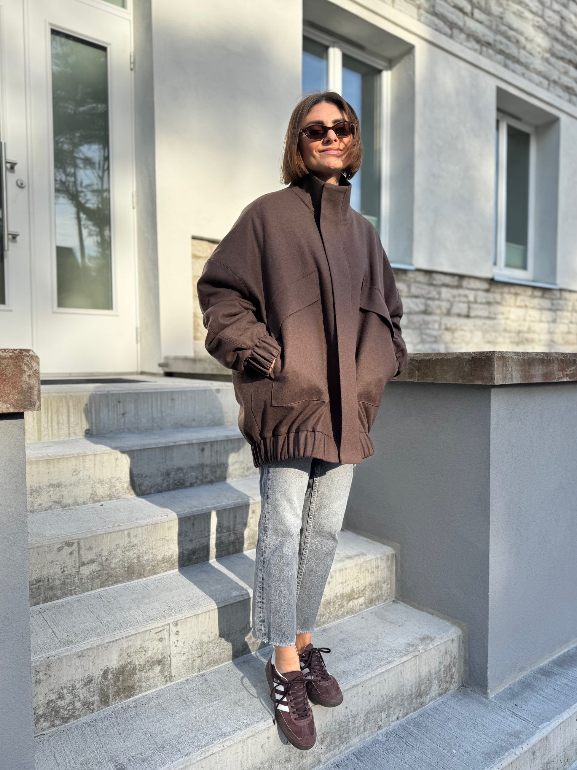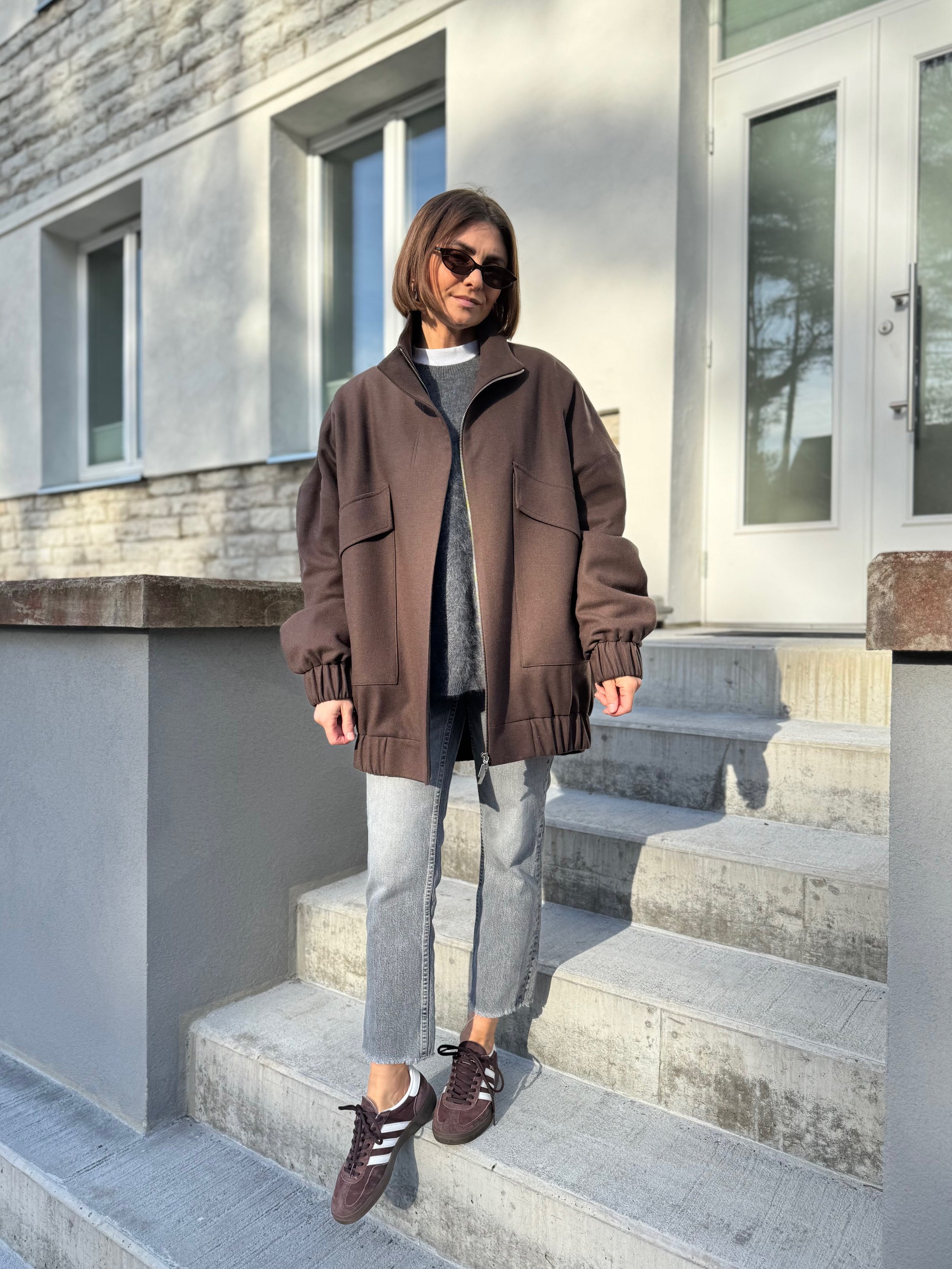 vigo is our another take on a classic bomber jacket. we have made vigo bomber bravely oversized with drop shoulder, curved sleeves and back. zipper is covered by flap for wind protection. compared to our london bomber, vigo has oversized flap pockets and high collar.