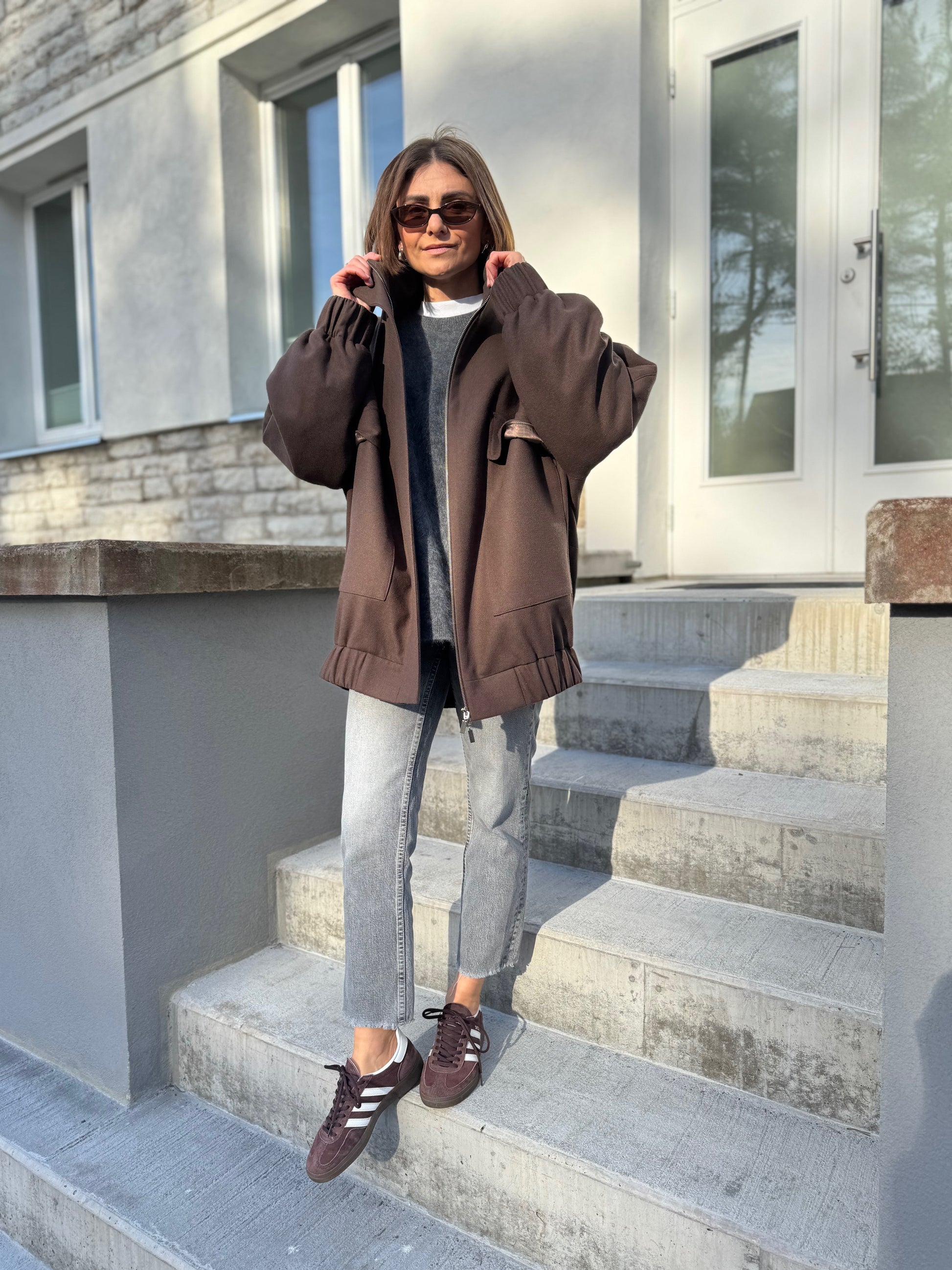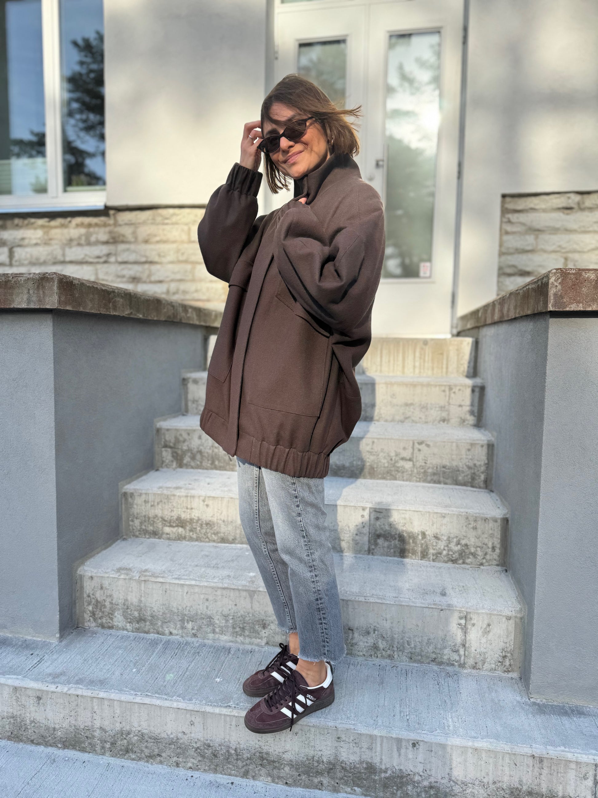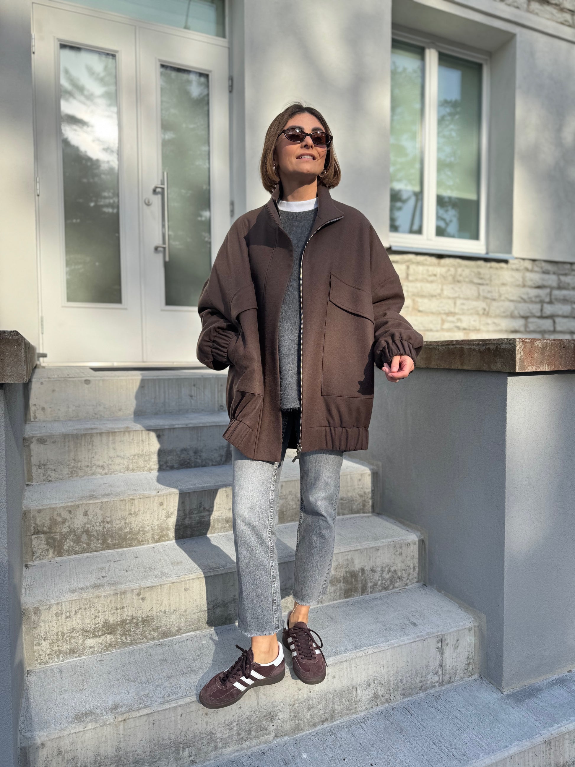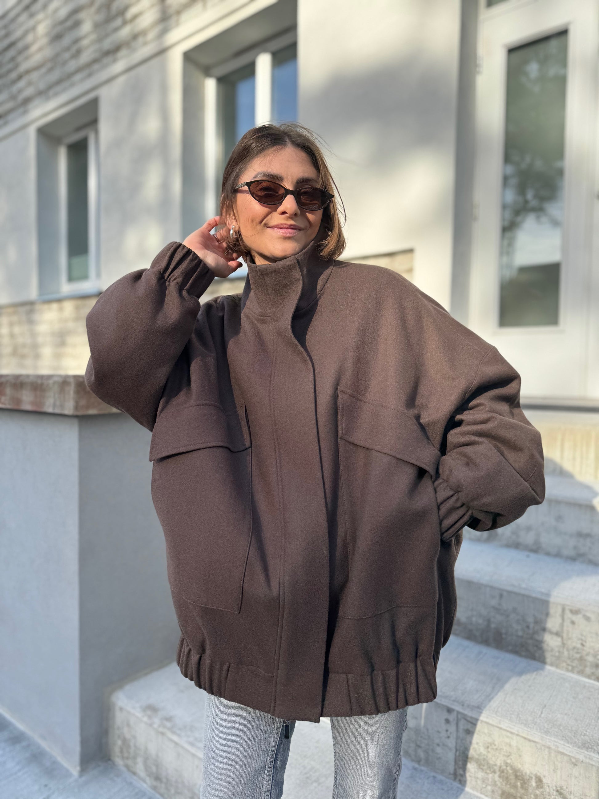 vigo is our another take on a classic bomber jacket. we have made vigo bomber bravely oversized with drop shoulder, curved sleeves and back. zipper is covered by flap for wind protection. compared to our london bomber, vigo has oversized flap pockets and high collar.